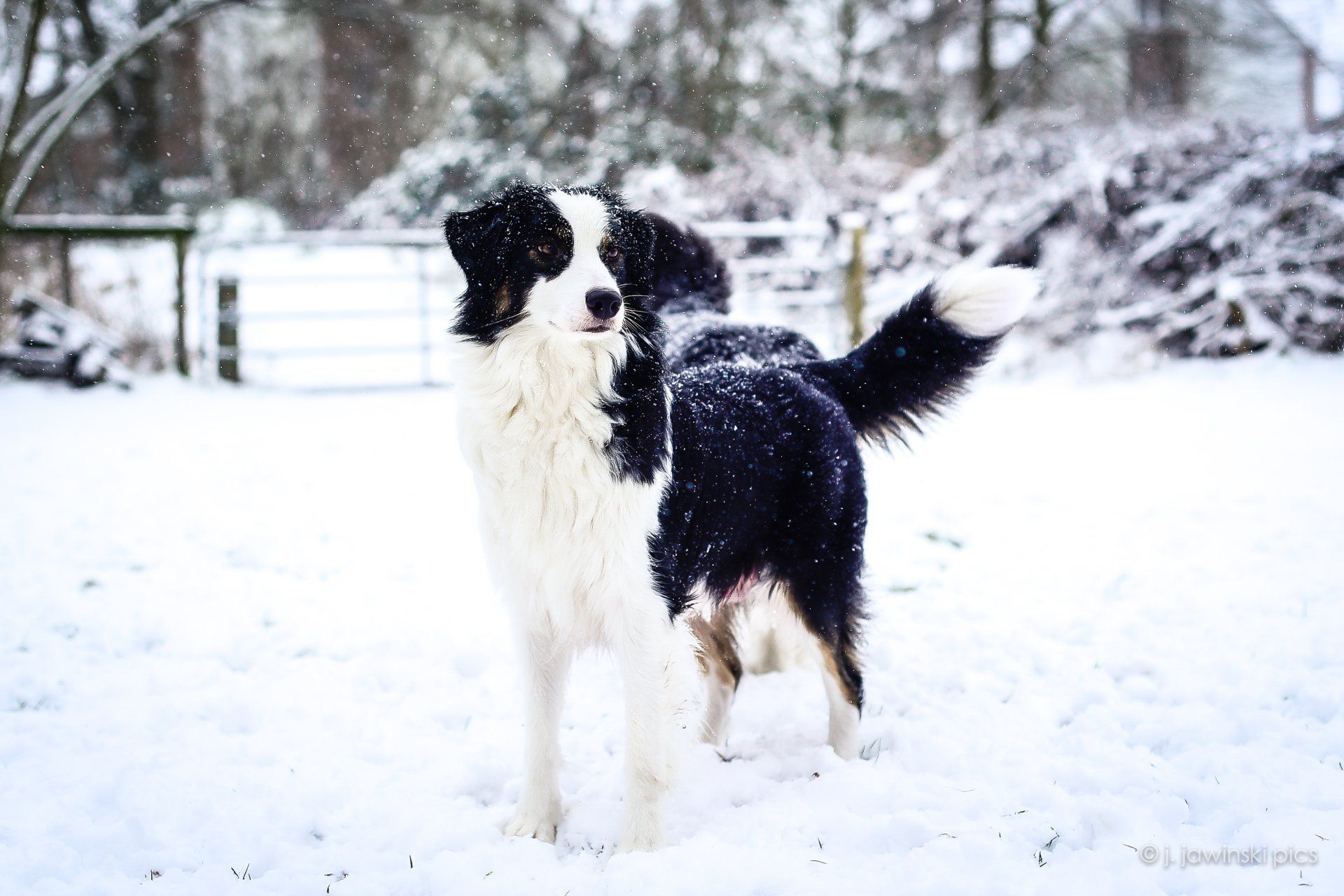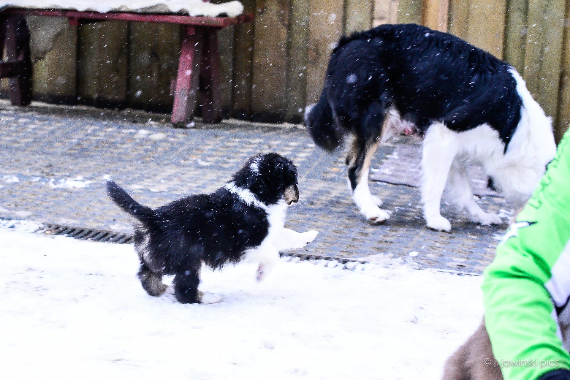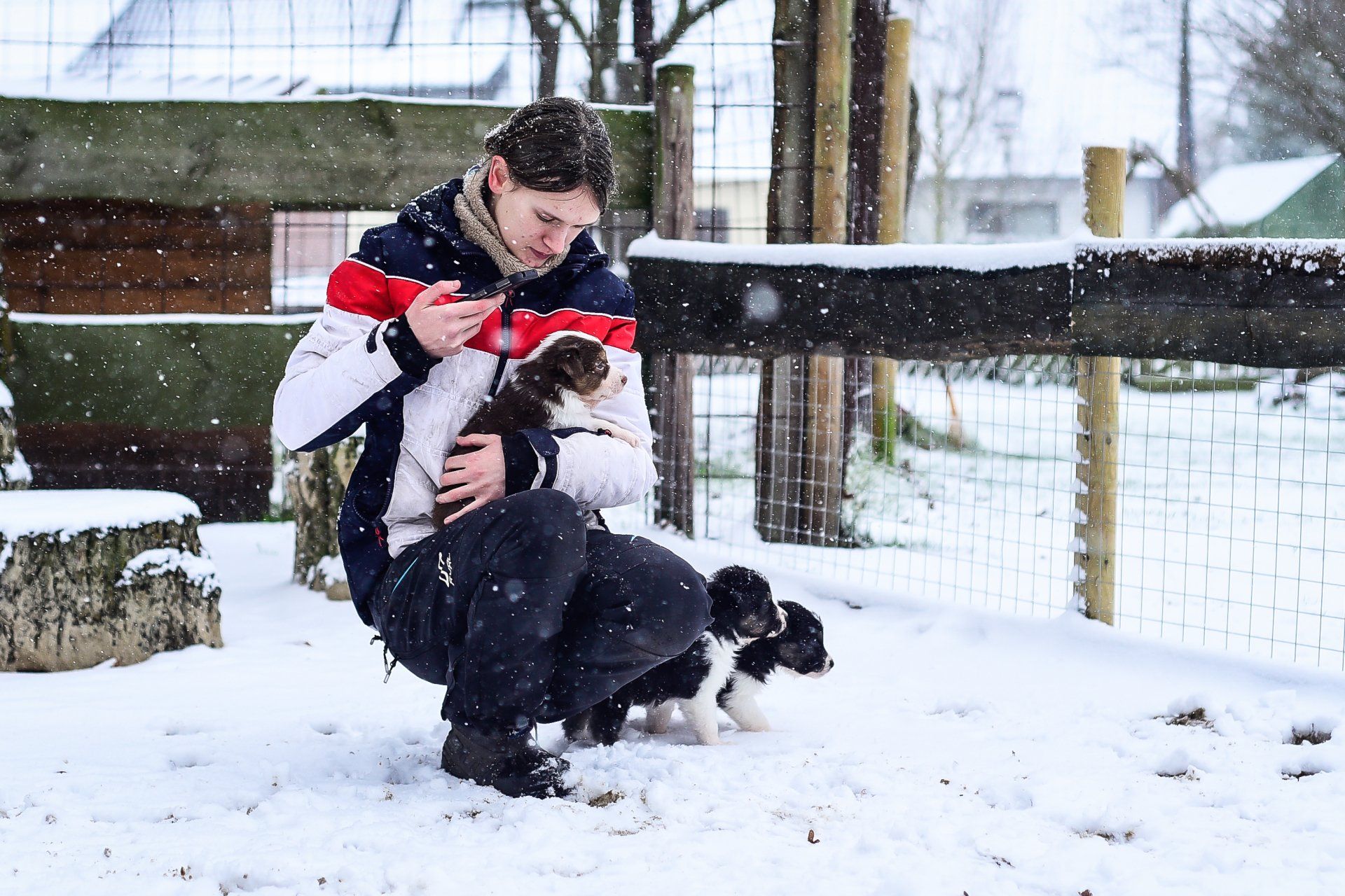 Die Kleinen haben unser Rudel kennengelernt und rennen im Welpenhaus herum. Unser Barfusspfad ist leider eingeschneit. Bringt also nicht viel, aber sieht trotzdem schön aus.