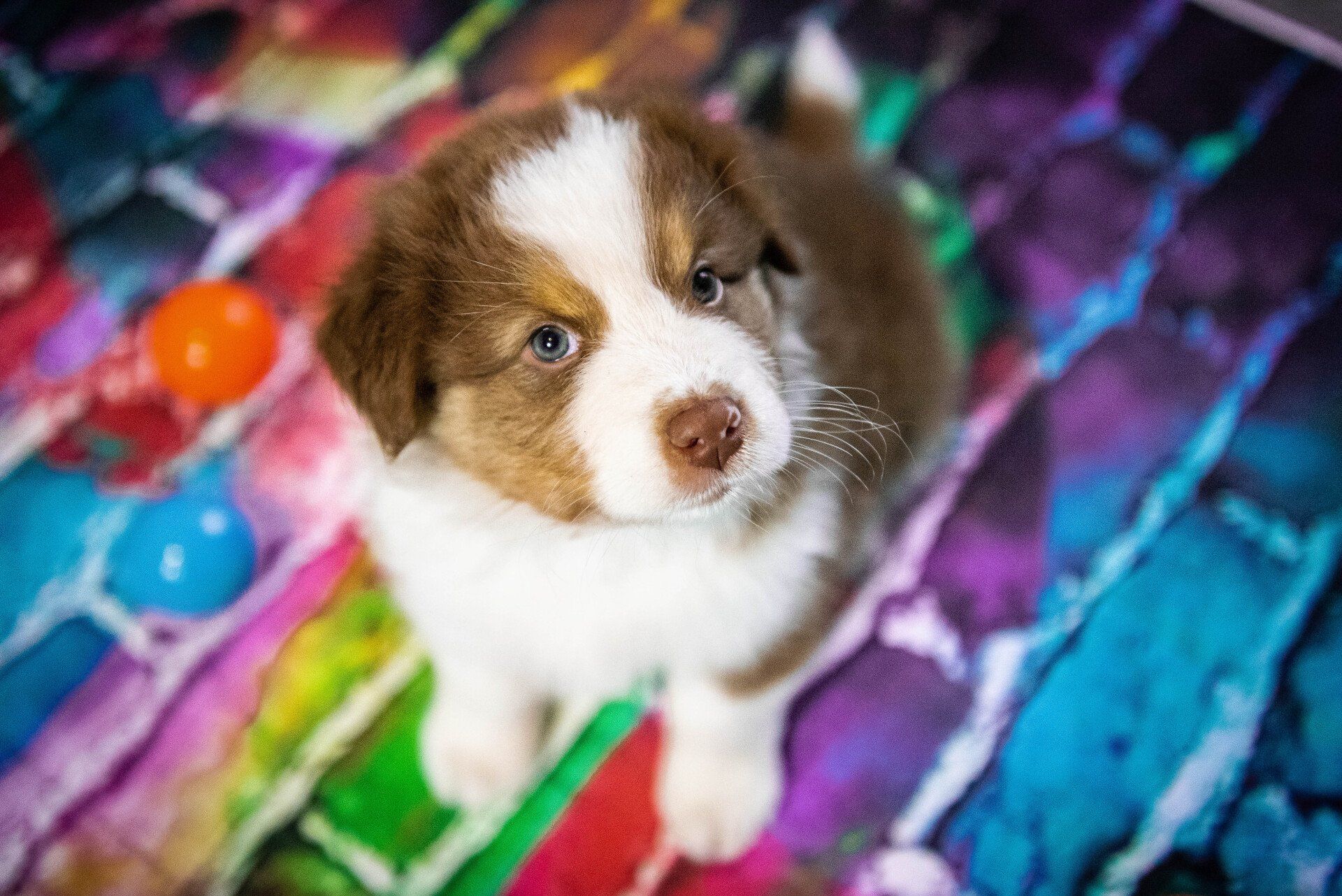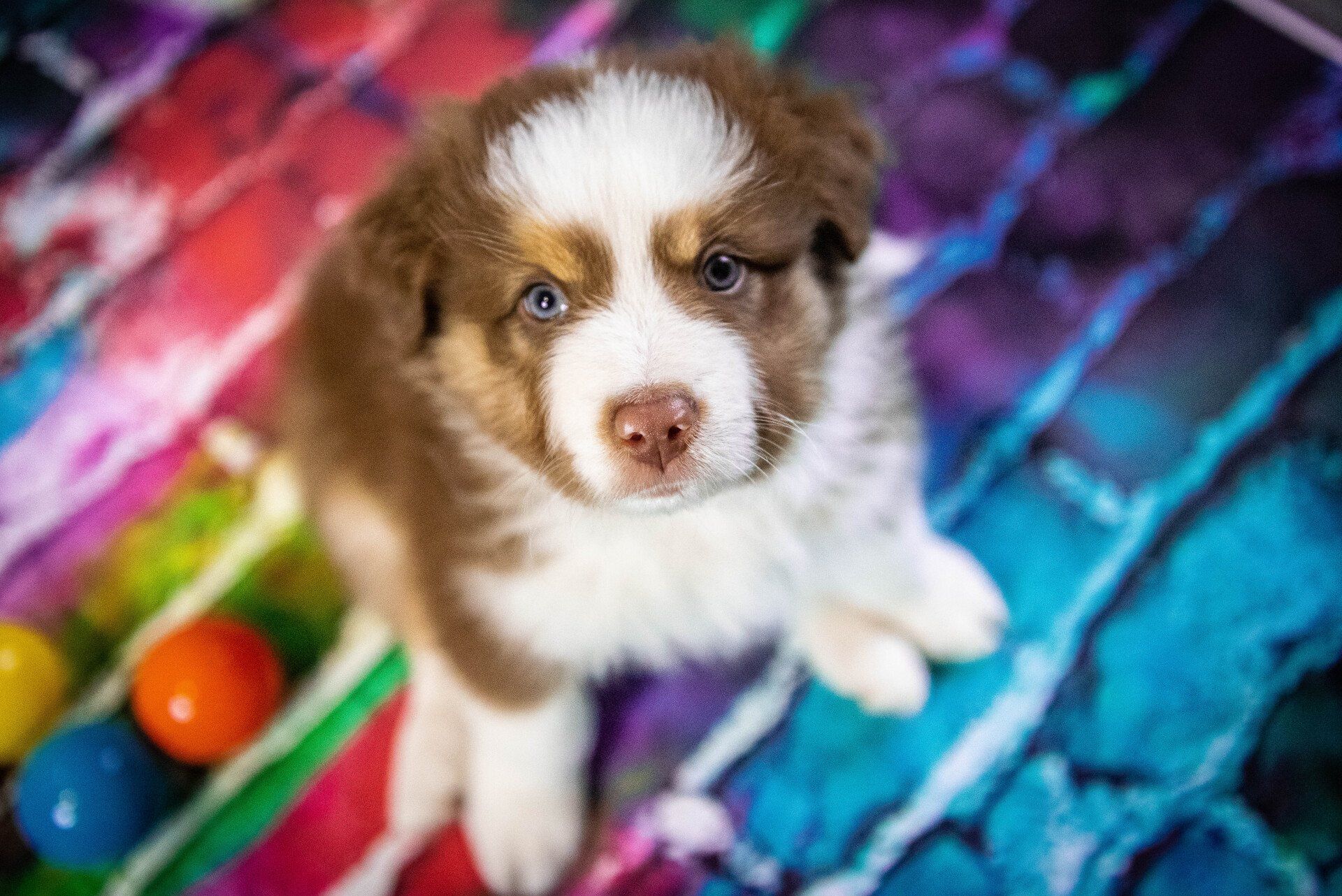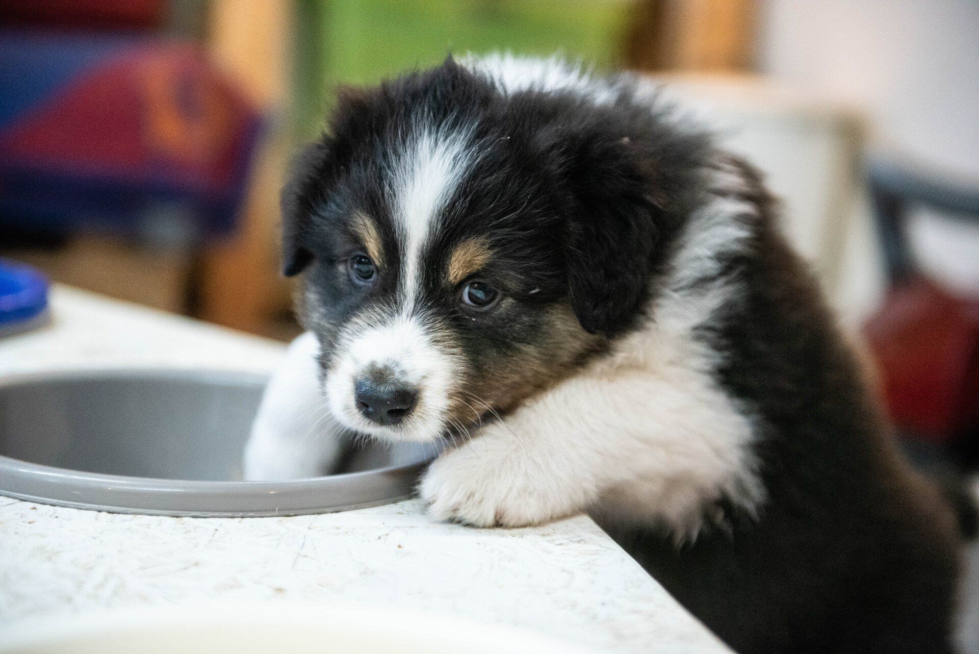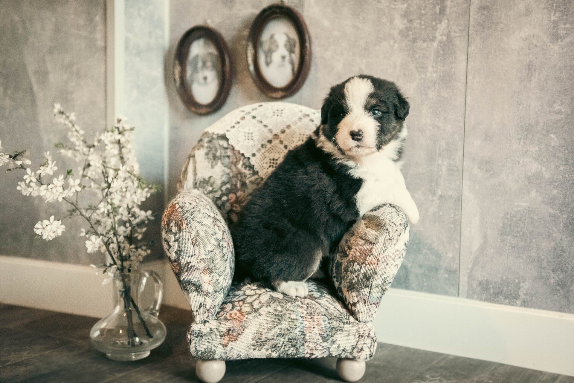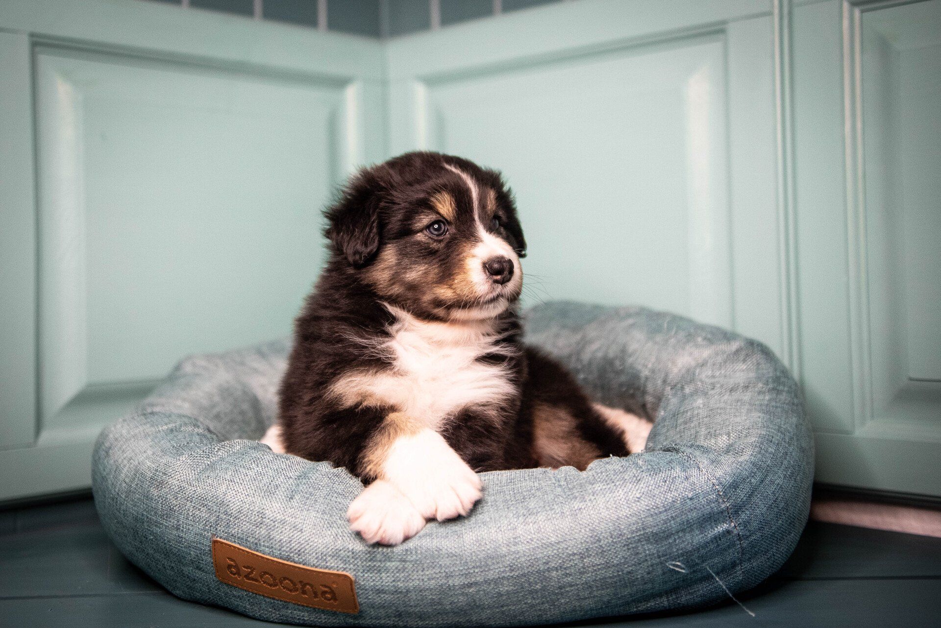 Also fand auch das Shooting im Welpenzimmer statt. Sie sind fünf Wochen alt und toben und hüpfen herum und ein paar haben wir schon einmal mit in die Küche oder ins Wohnzimmer genommen. Es ist so spannend, zu sehen, wie sie mit neuen Situationen umgehen und alles erkunden wollen. Manche sind sehr vorsichtig und andere mutiger.