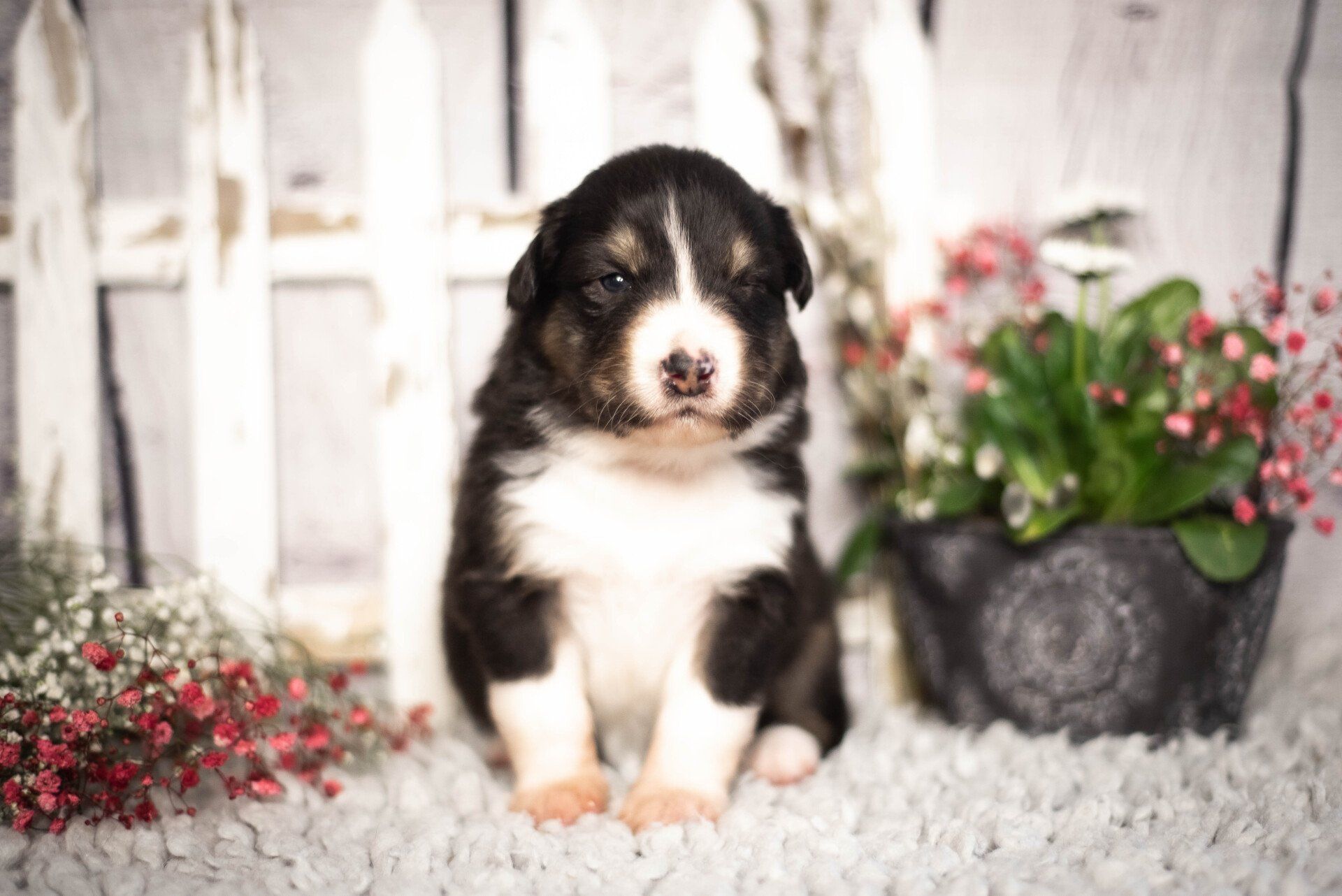 Wir sind sehr glücklich über diese tolle Verpaarung mit Welpen in black tri/ red tri,